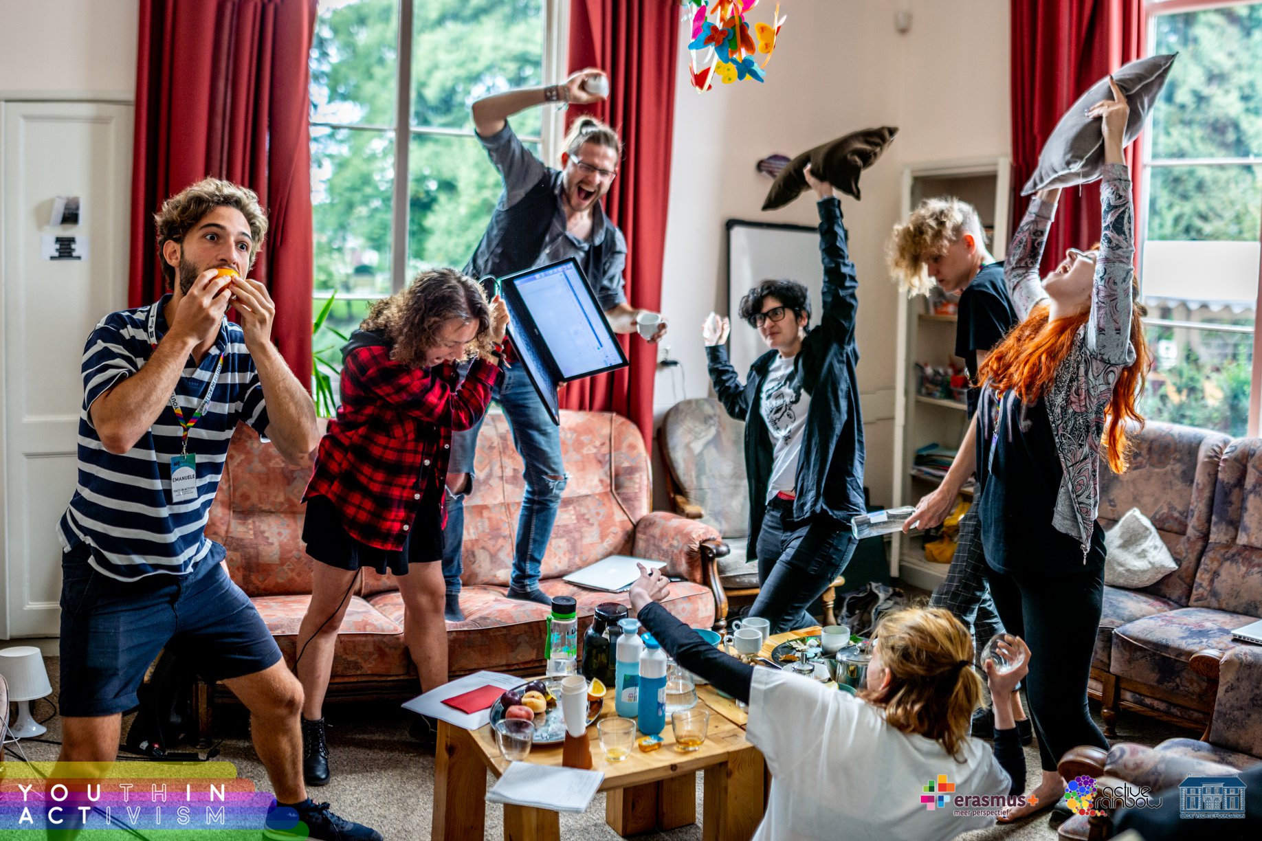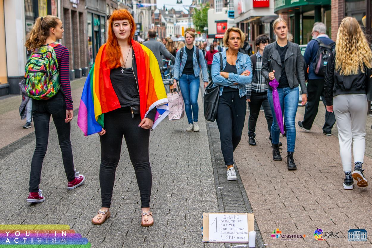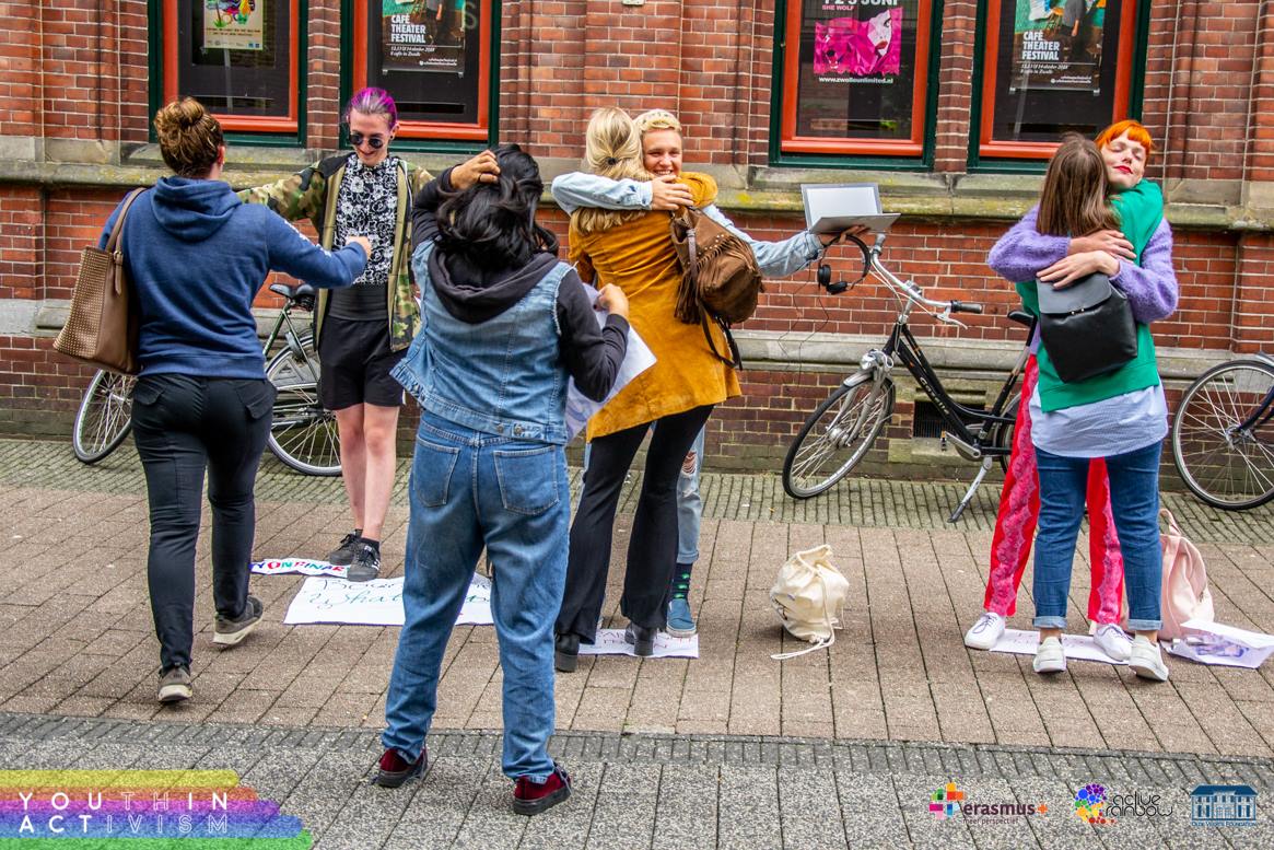 Avgusta 2018 se je pet udeleženk_cev iz Slovenije udeležilo mladinskega projekta YOUth in ACTivism v Ommnu na Nizozemskem (na spletni strani si preberi veÄ o projektu in poglej njegove rezultate). Projekt je trajal deset dni in sodelovali so udeleženci iz 8 razliÄnih evropskih držav, glavni temi projekta pa sta bili izdelovanje videoposnetkov za namene spletnega LGBTQIA+ aktivizma ter organizacija in izvedba uliÄnih akcij. Neformalno izobraževanje je bila glavna metoda dela, vsebino in obliko pa je avtorica projekta Cathy Manousaki opisala kot “nekaj vmes†med mladinsko izmenjavo in treningom.