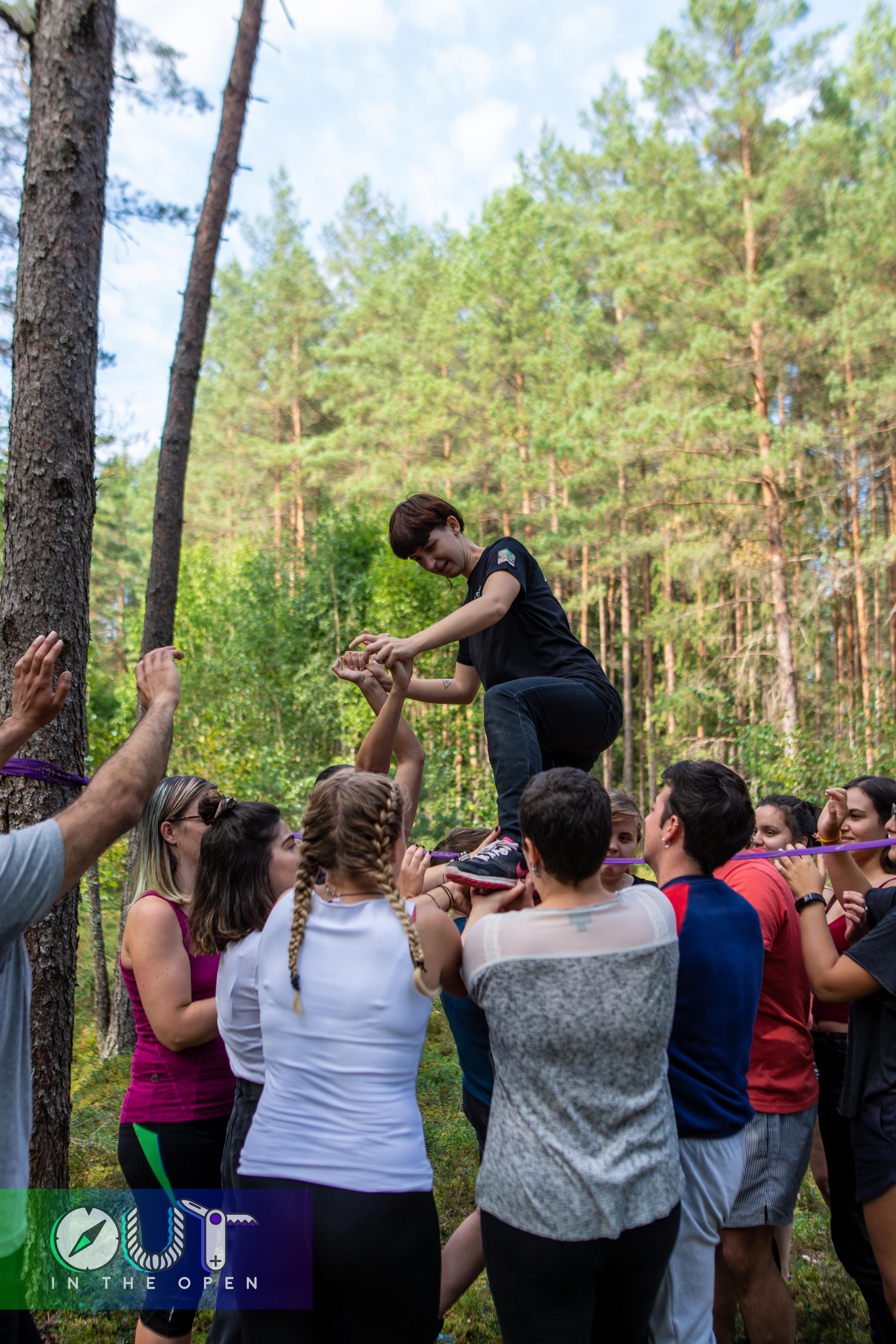 Tako je drugi dan v veÄini potekal na poti, na kateri smo se sreÄevale_i z razliÄnimi izzivi in postanki, preko katerih smo se spoznavale_i in zaÄele_i graditi skupinsko dinamiko. Vmes smo plezale_i Äez vrv, se zapletale_i v pajkove mreže, hodile_i s prevezami Äez oÄi (polovica naenkrat), zabredle_i v blato in uživale_i v Latvijskih gozdovih.
