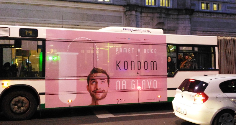 Najnovejši oglas iz DIH-ove kampanje na enem od ljubljanskih avtobusov